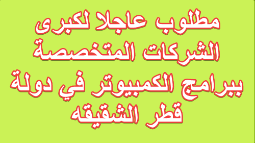 اهلا بكم متابعي موقع كيوت جوب ، كما عودناكم نحن في هذا الموقع نعرض لكم فرص عمل و يجب التنبيه اننا غير مسؤولين عن هذه الفرص و مصداقيتها و لا نقدمها نحن بل نقوم بجلبها من خلال بحثنا المستمر عن فرص العمل و عرضها فقط في هذا الموقع , و نتمنى للجميع التوفيق في الحصول على الوظيفة التي يريدها و يتمناها كما نتمنى لكم التوفيق في حياتكم المهنية , اليوم و في هذا المقال نقدم لكم فرصة عمل في كبرى الشركات المتخصصة ببرامج الكمبيوتر في دولة قطر الشقيقه .